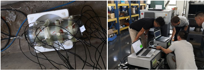 9月18日,赫伯特先生與我公司技術人員一同前往中國特種設備檢測研究院位于北京順義的檢測基地,指導我們對碳纖維氣瓶進行了加壓試驗。試驗的目的是針對碳纖維材料信號多的特點,再需要大量采集波形時,驗證儀器的數據處理和傳輸能力。現場通過兩臺儀器(一臺進行帶波形采集,另一臺無波形采集)同時對樣本數據進行采集,最終的結果證明采集波形和不采集波形的數據完全一致,驗證出Vallen的AMSY-6型聲發射儀器在進行大量信號波形采集時不會丟失數據。